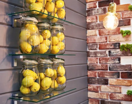 Efektowną dekoracją ścian w modnych stylizacjach jest powtórzenie danego motywu – np. w formie oprawionych grafik. Cytryna to dobry model fotografii czy rysunku warty wykorzystania. Jej kolor, kształt (działający podświadomie na zmysły węchu i smaku) przyciągnie uwagę oraz ożywi każde wnętrze. Intensywny żółty świetnie gra z kolorami aktualnie tak bardzo popularnymi we wnętrzarstwie jak szary i czarny, ale komponuje się równie atrakcyjnie z głębokim granatem czy mocną butelkową zielenią. Wnętrza surowe, pozornie puste, jak hole, klatki schodowe czy gabinety dobrze będzie ożywić owocowym motywem, szczególnie na lato.