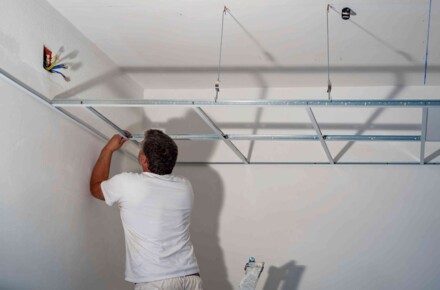 Montaż sufitu podwieszanego – konstrukcja z profili i płyt