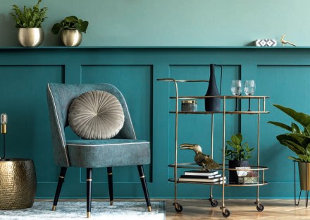 Butelkowy uchodzi za najbardziej szlachetny odcień zieleni. Naturalny kolor szkła kojarzy się z czymś trwałym, niezniszczalnym i drogocennym zarazem. Dodatek tej barwy sprawia, że nawet najbardziej nieciekawe wnętrze nabiera szyku i elegancji. Najpiękniej wygląda zestawiona z odcieniami kamieni szlachetnych i z połyskującymi materiałami. Dodaje klasy i powagi – nic dziwnego, że to jeden z ulubionych kolorów brytyjskiej rodziny królewskiej. W czasach wiktoriańskich butelkowa zieleń była wykorzystywana na dekoracyjnych zasłonach, materiałowych tapetach oraz witrażach. Popularnością cieszy się do dziś w angielskich pubach jako barwa tkaniny obiciowej pikowanych kanap i foteli chesterfieldów. Butelkowa zieleń to kolor baza – sama w sobie jest dość ciemna, warto więc ją rozświetlić jaśniejszymi tonami – pięknie się prezentuje z pudrowym różem, kolorami nude i écru. Z ciemniejszymi barwami staje się zestawiona z bardziej zmysłowa i nabiera wyrafinowanego charakteru – zjawiskowo wygląda np. ze złotem.